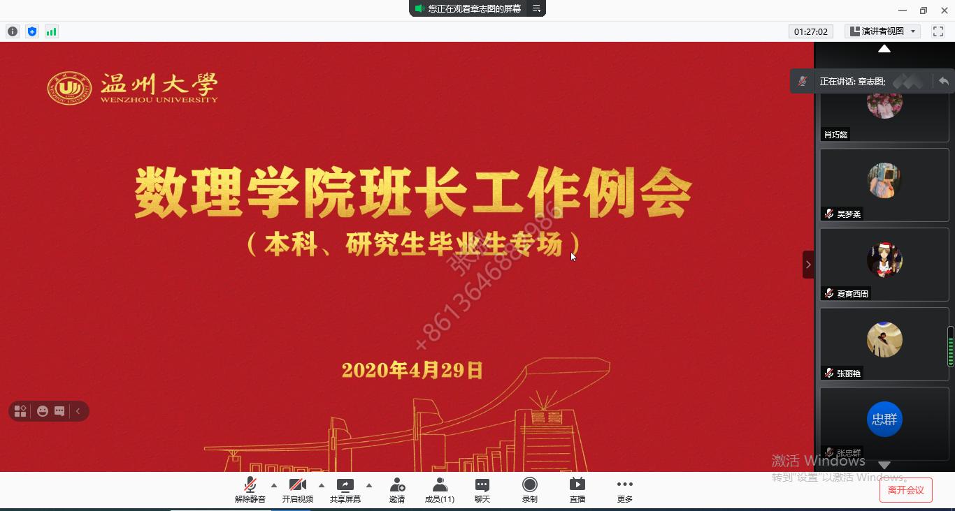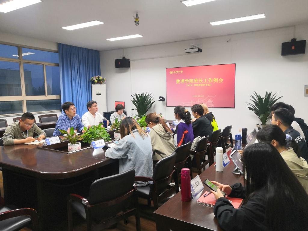 为及时了解学情动态,有针对性地做好学生工作,4月28日晚,新葡萄8883官网AMG在3B406会议室召开19级、20级班长工作例会,听取相关班长对班级工作的汇报和对学院的建议,并安排学工办陈亮、张丽艳两位老师先后讲解今年考研和教师资格证考试具体情况,提醒同学们投入专业学习,提升学业质量。4月29日晚,学院以线上会议形式,召开了本科、研究生毕业班班长会议,听取班长对毕业班情况的汇报。学院党委副书记章志图老师主持上述两场会议并做总结发言,指导各班同学做好疫苗接种、安全教育、学风建设和就业工作等事项。