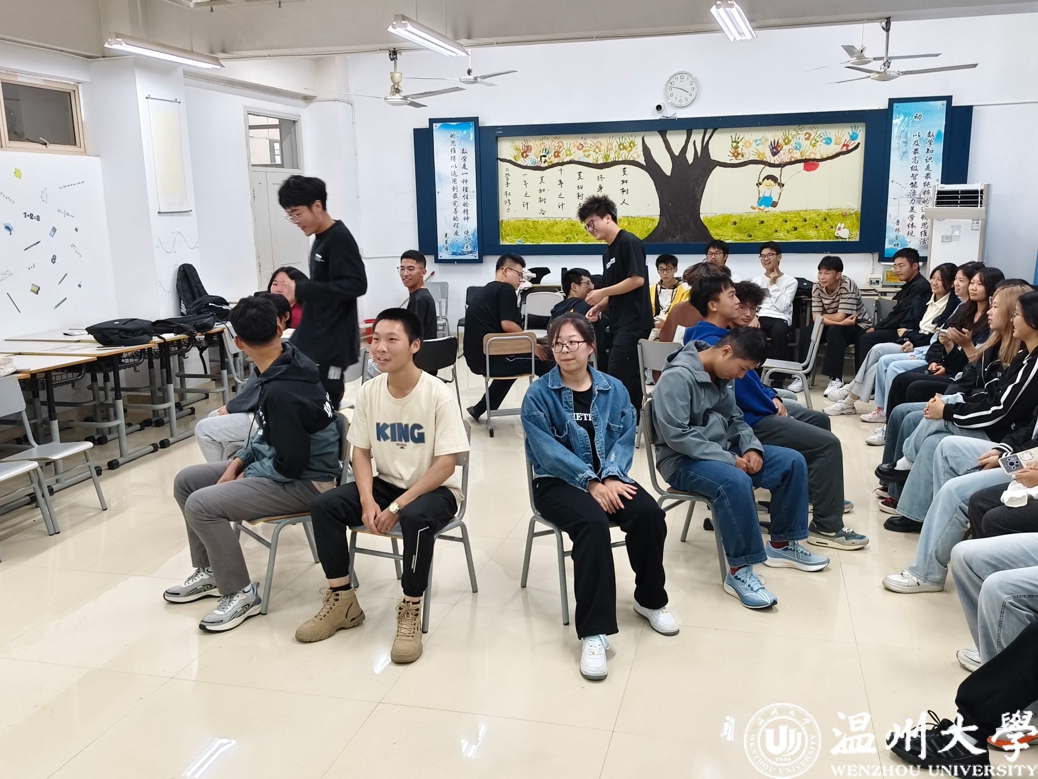 活动过程中开展了“自我介绍”“吹台风”“赞美”“五毛一块”“滚雪球”“让我自豪”“天生我材”等活动。在游戏的过程中,同学们放松了身体,勇于表达自我、展现自我,从陌生到熟悉,从腼腆到放开,增强了彼此之间的默契和信任。活动中,同学们纷纷表达了赞美、期望与祝福,学会了接纳他人,共同感受集体的温暖和快乐。最后,辅导员老师总结了活动的意义,并在大学工作、人际、学习、心理调节等各个方面,给同学们许多建设性建议。