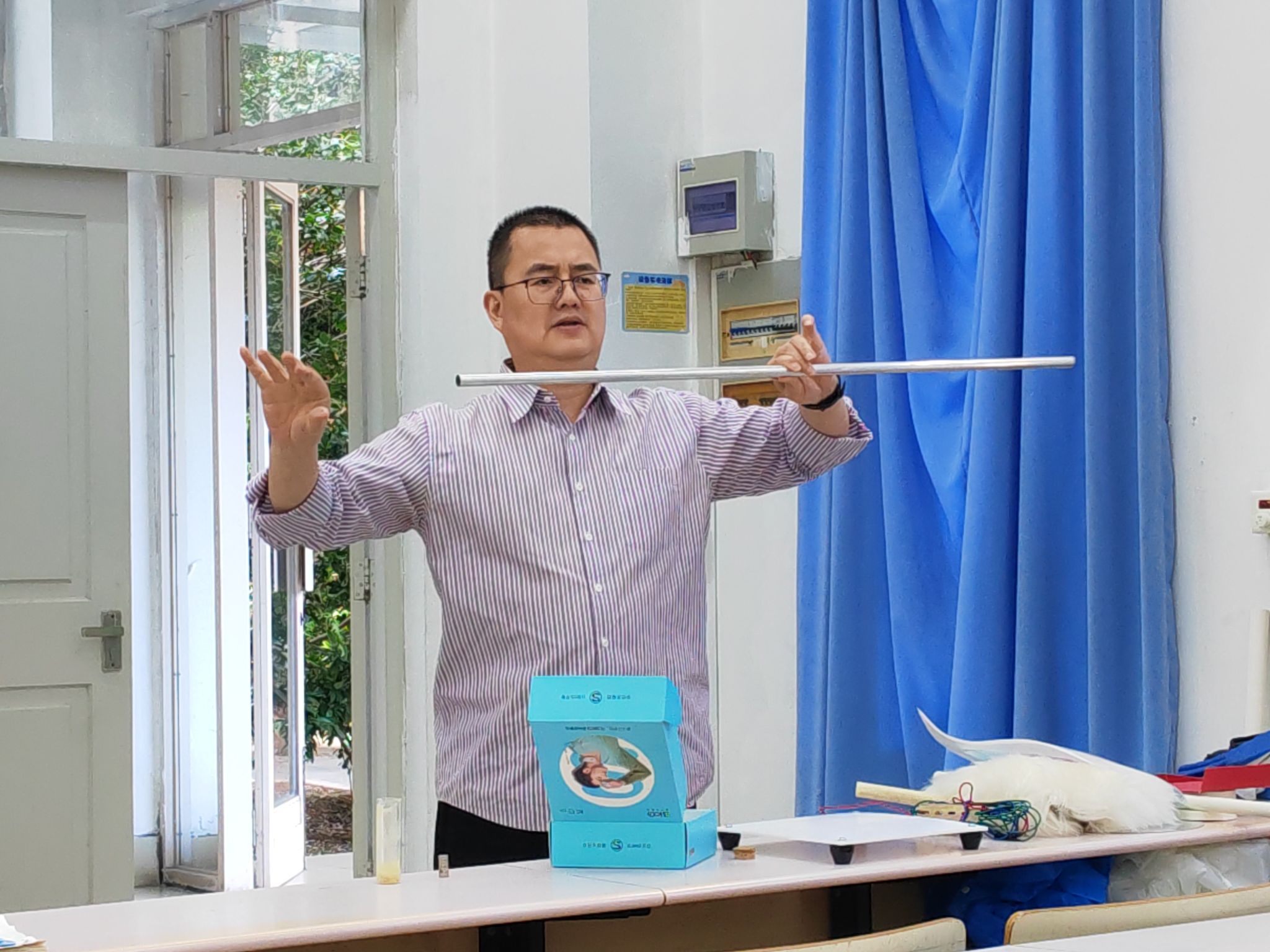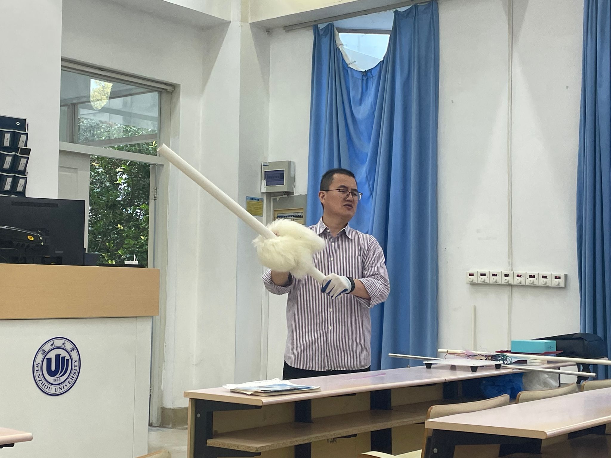 而后,刘老师分享了许多自制教具,启发同学们主动观察生活,从身边常见的物品入手,大胆尝试,发挥创造性思维制作教具。刘老师立足高中课堂,引用了一个个鲜活的教学案例,提出了“复现经典实验”、“制作互动玩具类仪器”等效果极佳的教具制作与教学方案,多方借鉴、完善设计方案,用新材料改进教材实验,用新方案改良教材实验,用新设计填补教材空白,展示了实验创新的核心魅力。