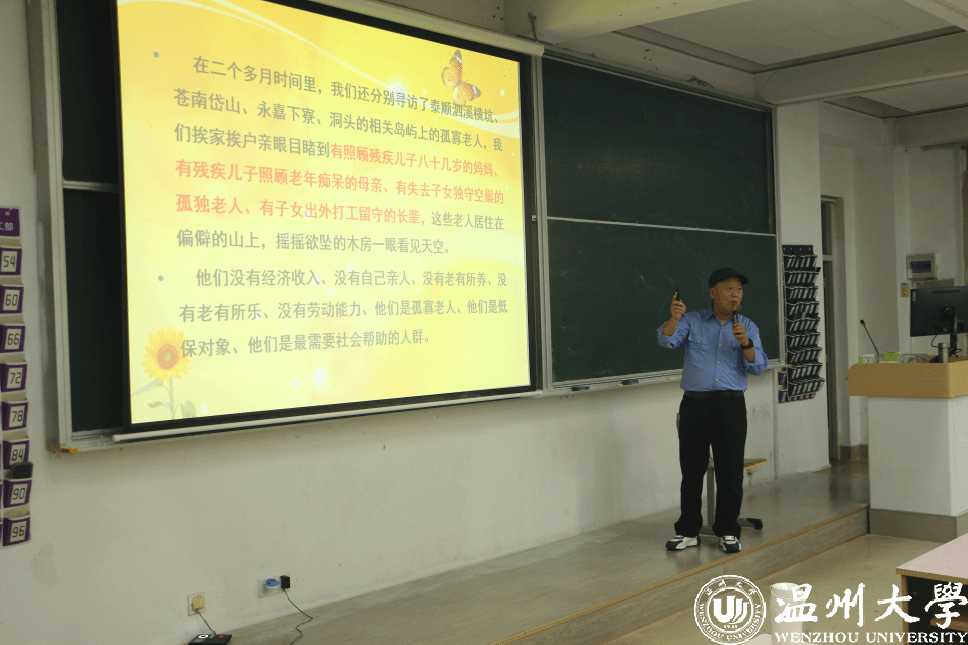 为激励在校大学生积极投身志愿服务,传承和发扬尊老敬老传统美德,11月14日,一位特殊的嘉宾——温州市民网络观察员、市民监督员、知名公益达人尹志松在新葡萄8883官网AMG与阳光志愿者团队进行了一场深刻的交流。