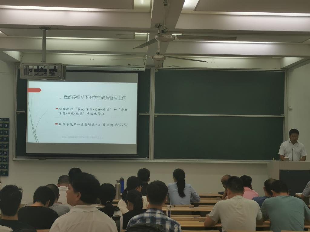 会议伊始,学院为新入职教师举办了简单而隆重的欢迎仪式,陈书记代表学院对新教师的到来致以热烈欢迎,并提出立德树人、正已修身等殷切希望。随后陈书记传达了校领导在2020年暑期党委理论学习中心组(扩大)学习会及我校2020年新学年全体教职工大会上的讲话精神,通过回顾一年来学校取得的成绩激励人心,通过梳理暑期新葡萄官网工作成效鼓舞干劲,通过结合学院新学期工作重点明确方向,突出强调了抓紧抓好应用数学师范类专业认证工作,大力推动研究生教育培养等事宜。同时对疫情防控管理、厉行节约等工作作出相应部署。