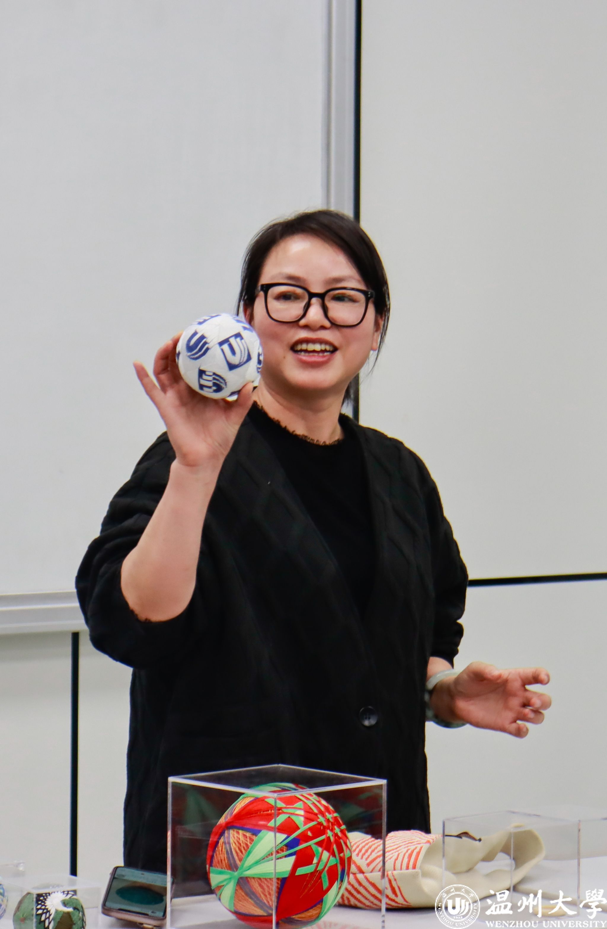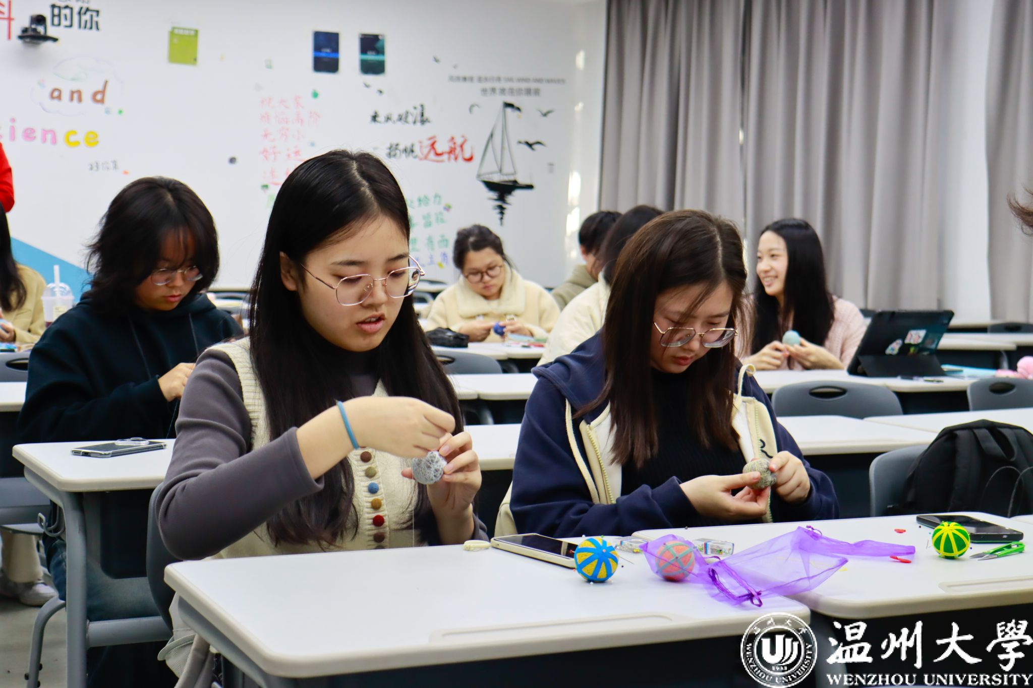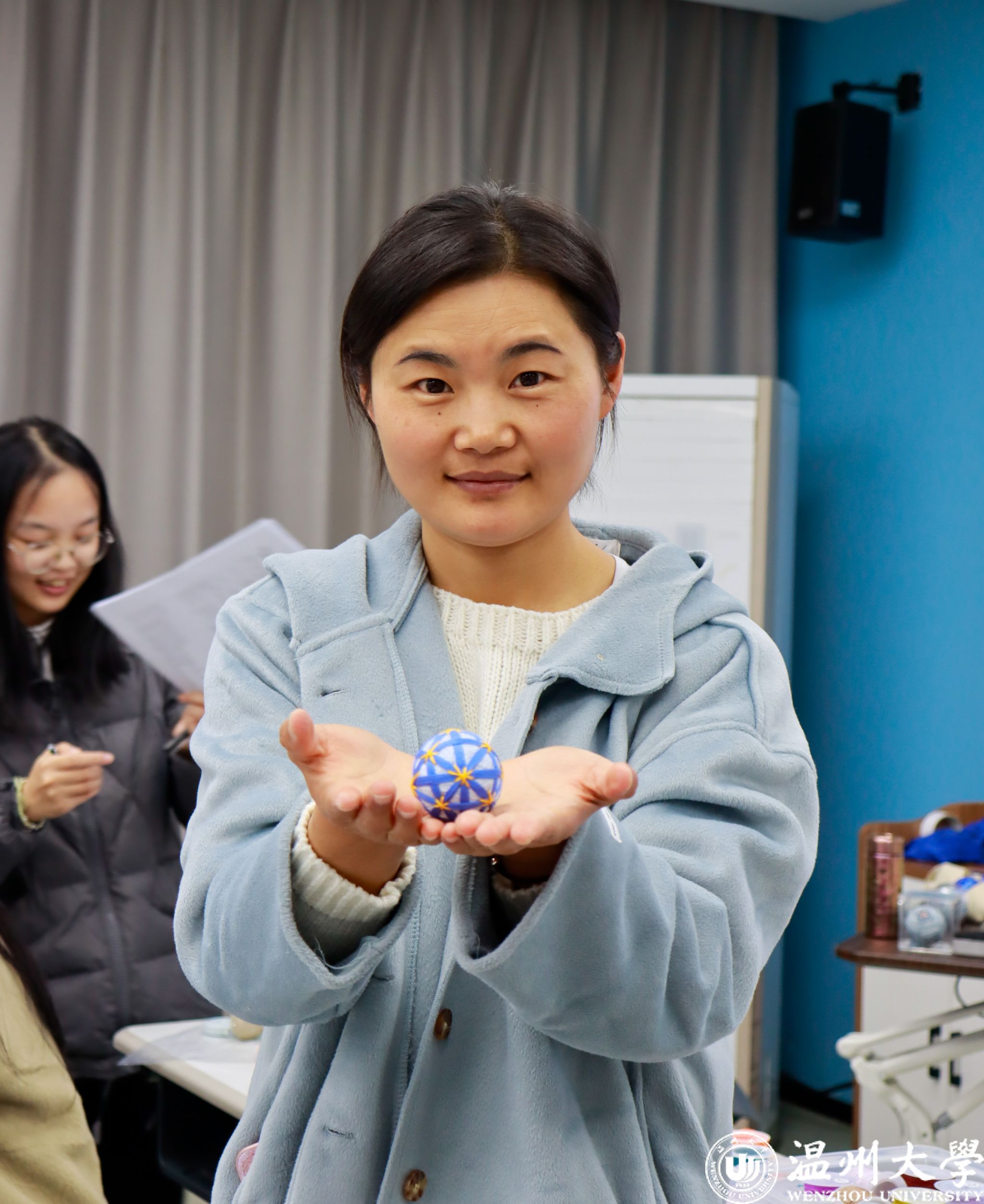 过程中,师生们积极交流,相互帮助,场面温馨而活跃。随着时间的推移,一个个色彩斑斓、图案独特的手鞠球逐渐成形。每个手鞠球不仅展示了其精致的手工艺,也反映了制作者对几何学原理的深刻理解与应用。
